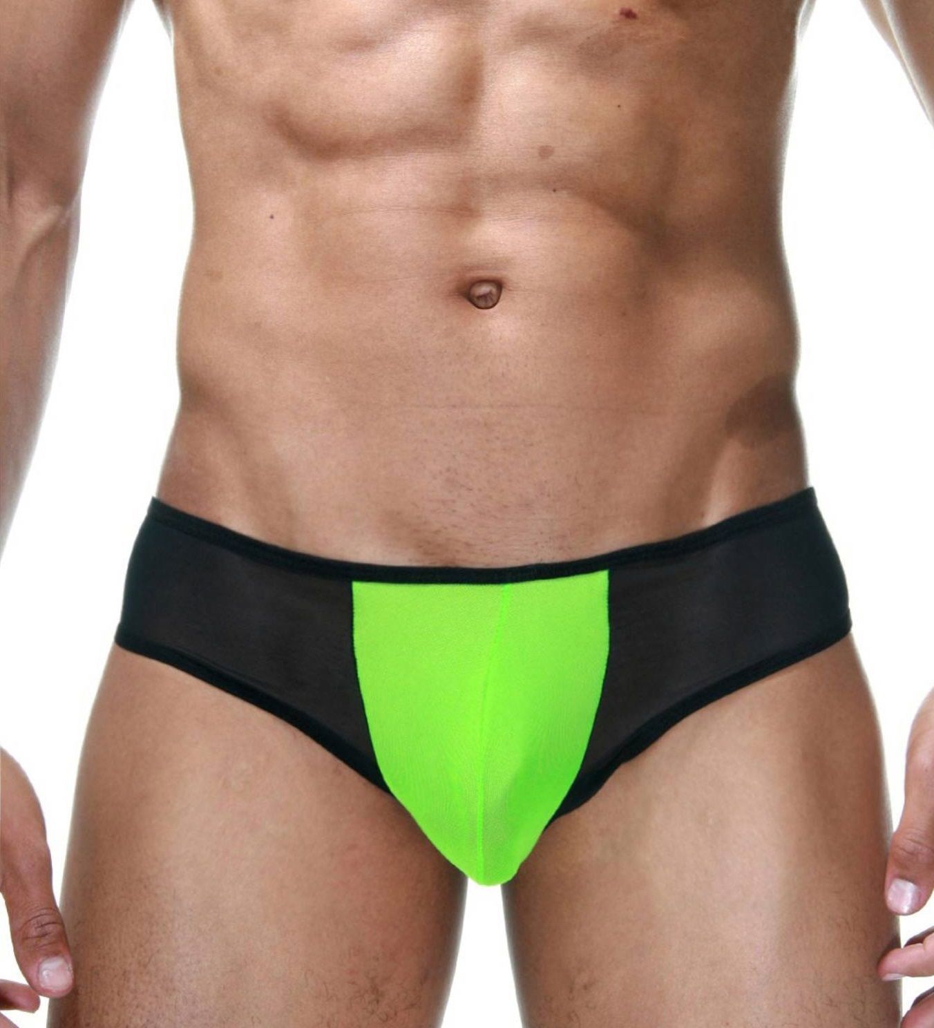 Эротичные черные трусы-бразилиана с лаймовой вставкой