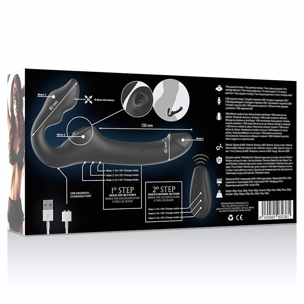 Безремневая конструкция исключает необходимость использования дополнительных креплений и портупей, обеспечивая полную свободу движений. Устройство управляется дистанционно, что добавляет элемент игры и неожиданности в процесс. Для сохранения долговечности материала рекомендуется использовать лубриканты исключительно на водной основе. После использования девайс легко очищается теплой водой с мягким мылом или специальным антисептиком для интимных изделий.