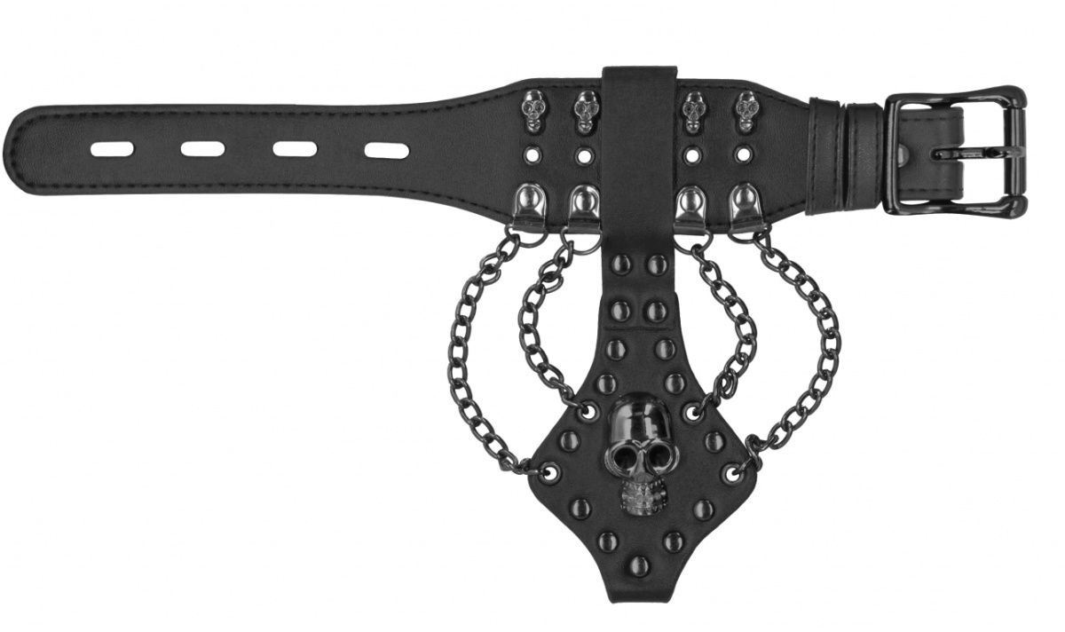 Этот стильный аксессуар сочетает в себе эстетику байкерской культуры и практичность регулируемого браслета. Модель "Skull Bracelet with Chains" от Shots Media BV создана для тех, кто ценит смелые детали и индивидуальный стиль в одежде и аксессуарах.