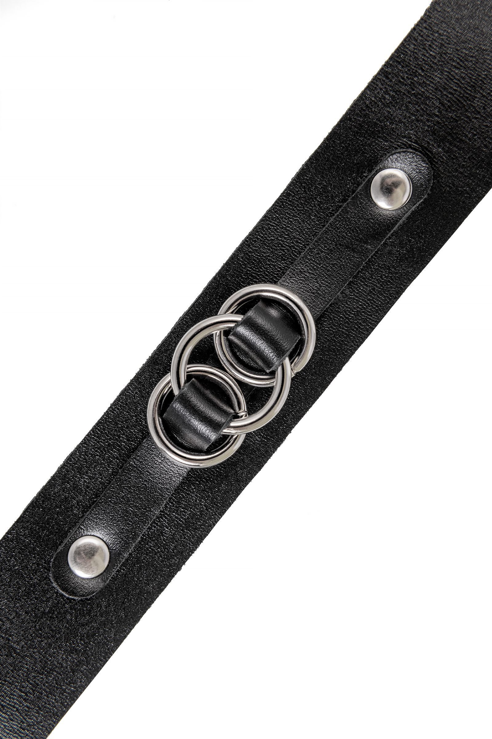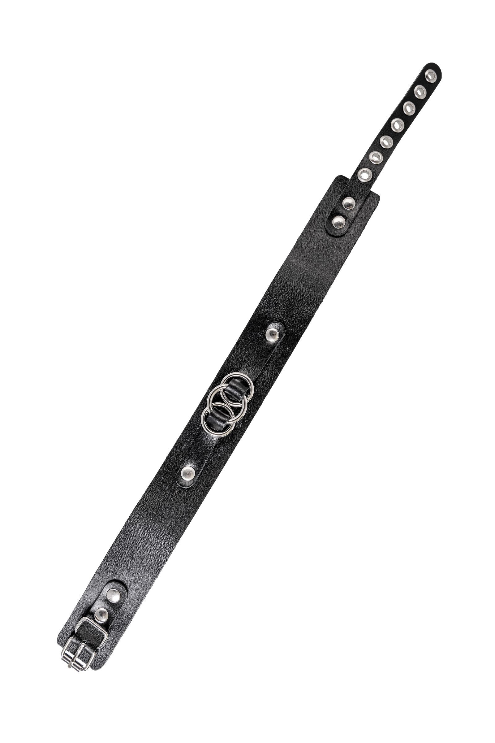Чокер-ошейник из натуральной кожи черный с металлическими кольцами, универсальный размер