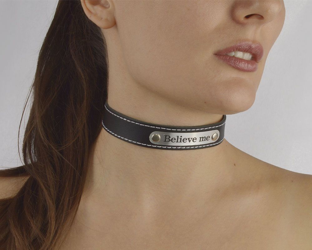 Чокер черного цвета с белой строчкой "Believe me" — это идеальный аксессуар для тех, кто ценит стиль и оригинальность. Изготовленный из натуральной кожи, он не только подчеркивает вашу индивидуальность, но и обеспечивает комфорт при носке. Этот чокер станет отличным дополнением к любому образу, добавляя нотку дерзости и загадки.