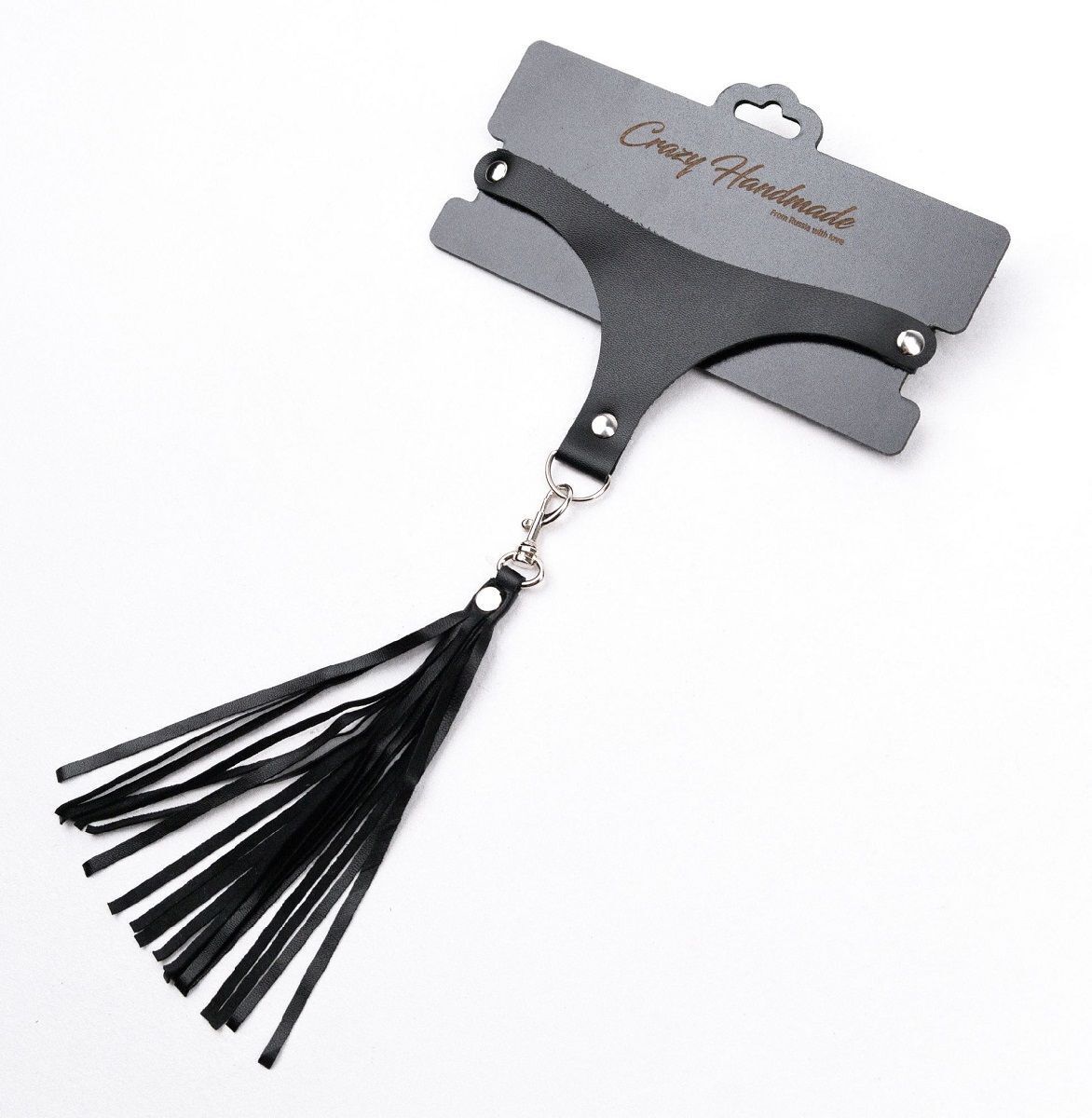 Чокер кожаный черный со съемными кисточками, карабин для регулировки, Crazy Handmade