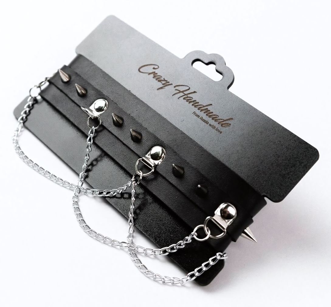 Этот черный чокер из натуральной кожи с шипами и металлическими цепочками создаст яркий и выразительный образ, подчеркивая индивидуальность и стиль. Идеально подходит для взрослых, ценящих качество и стиль в аксессуарах для сексуальных игр и саундомазохистской атрибутики.