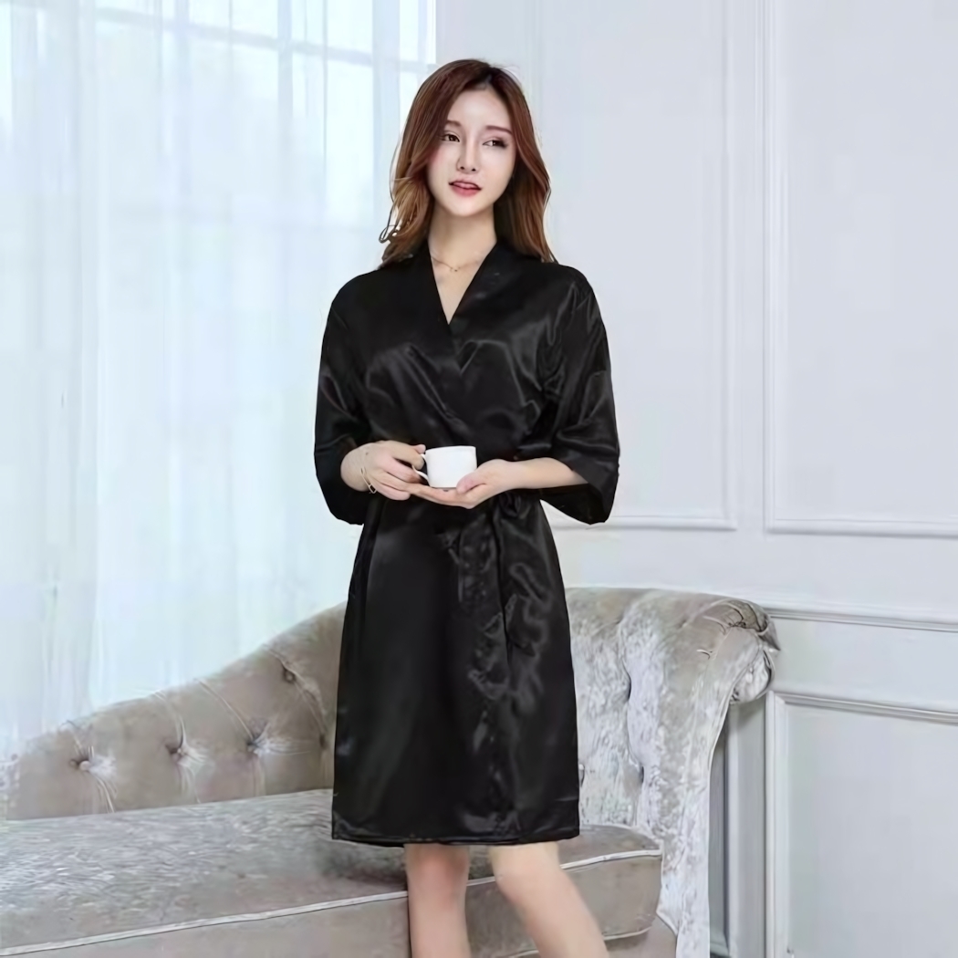 Идеален для утренних ритуалов с чашечкой кофе, спа-процедур дома или романтических вечеров. Практичная ткань не требует специального ухода — достаточно машинной стирки при 30°C. Длина 110 см обеспечивает полное покрытие тела, сохраняя женственность силуэта.