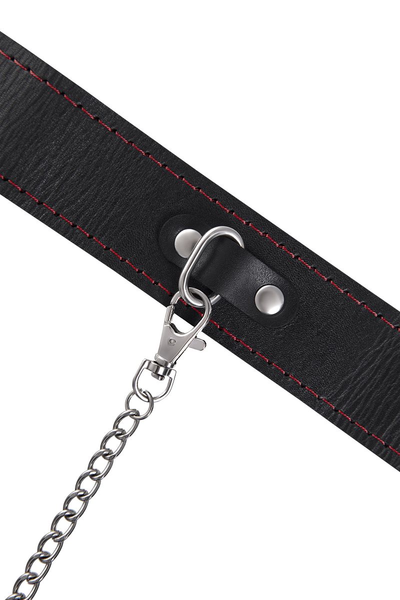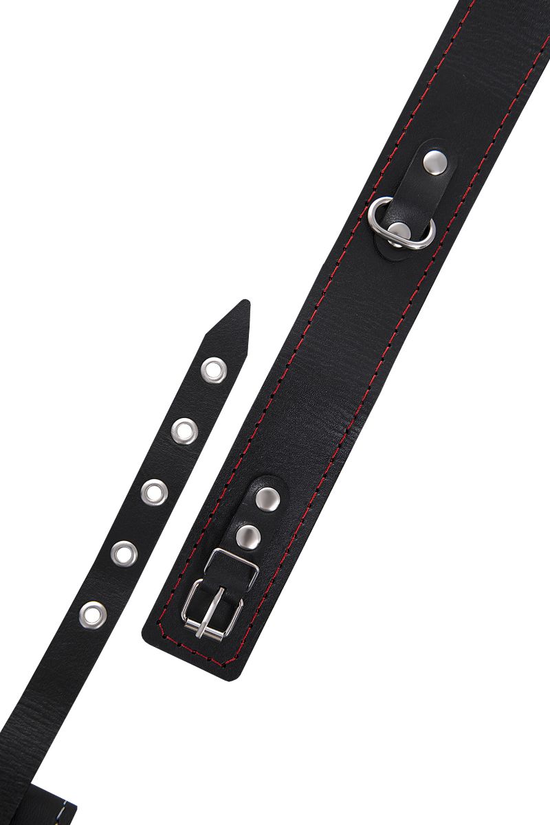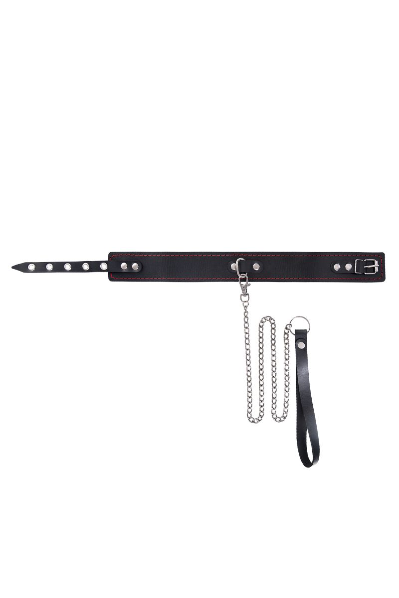 Двухслойный ошейник из натуральной кожи в комплекте с металлическим поводком — это аксессуар, который поможет вам погрузиться в мир ролевых игр и исследовать новые грани отношений. Минималистичный дизайн с контрастной красной строчкой подчеркивает эстетику и качество исполнения, а прочные материалы гарантируют долговечность и безопасность использования.
