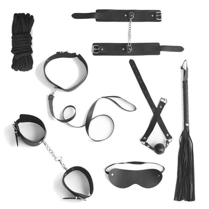 Набор включает в себя ошейник, поводок, маску, кляп, плеть, наручники, оковы для ног и веревку для связывания. Вы можете использовать все предметы одновременно или по отдельности, меняя правила и роли в игре. Это идеальный выбор для тех, кто хочет добавить немного остроты в свои отношения.