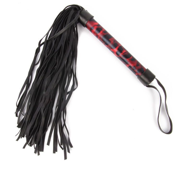 Флоггер BDSM Notabu с эргономичной ручкой, искусственная кожа, черный/красный, 41 см