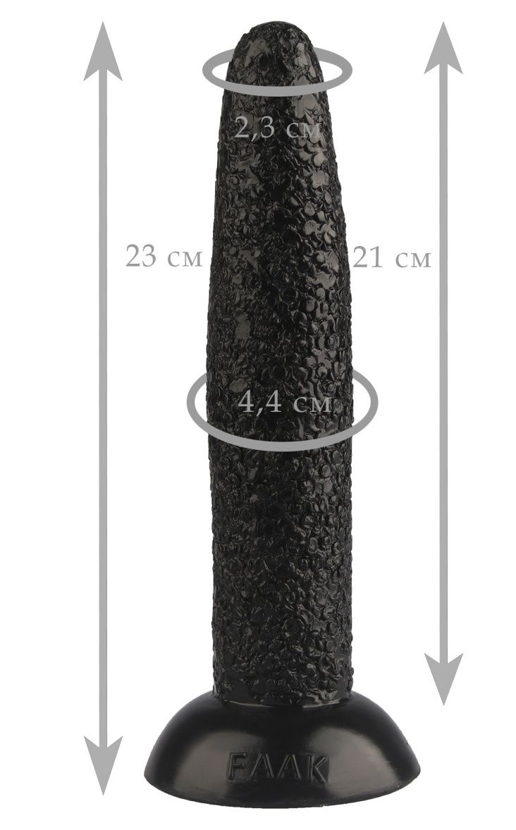 - Оптимальные размеры: Общая длина 23 см с рабочей частью 21 см позволяет достигать глубокой стимуляции. Диаметр варьируется от 2,3 см в узкой части до 4,4 см в основании, обеспечивая постепенное и контролируемое расширение.