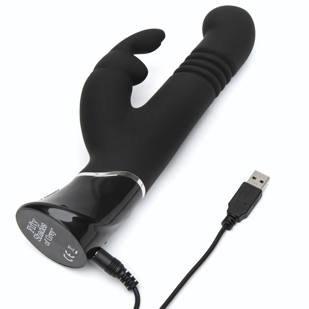 Вибратор «Greedy Girl Thrusting Rabbit» с толчковой функцией, 36 режимов, двойная стимуляция, 22,8 см, силикон, черный