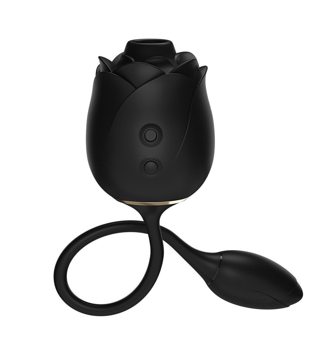 Клиторальный стимулятор "Dark Blushing Rose", черный, силикон, 33см, 9 режимов вибрации