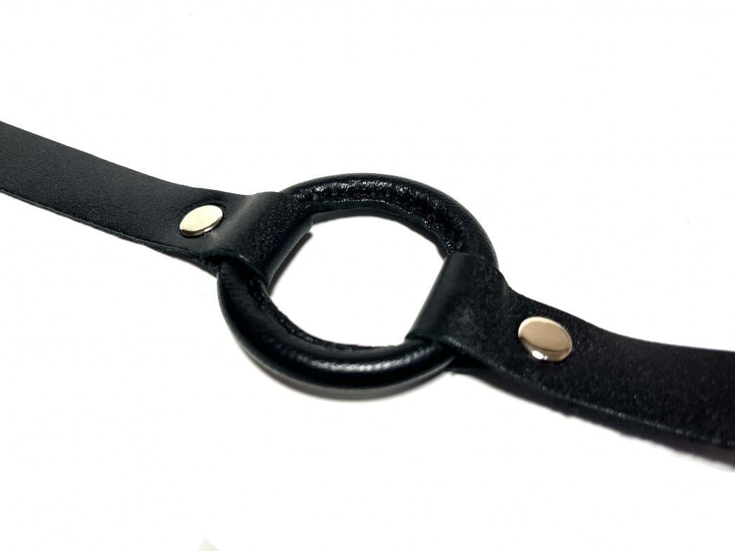 Кляп-кольцо из натуральной кожи, черный, регулируемый ремешок, диаметр 4,5см