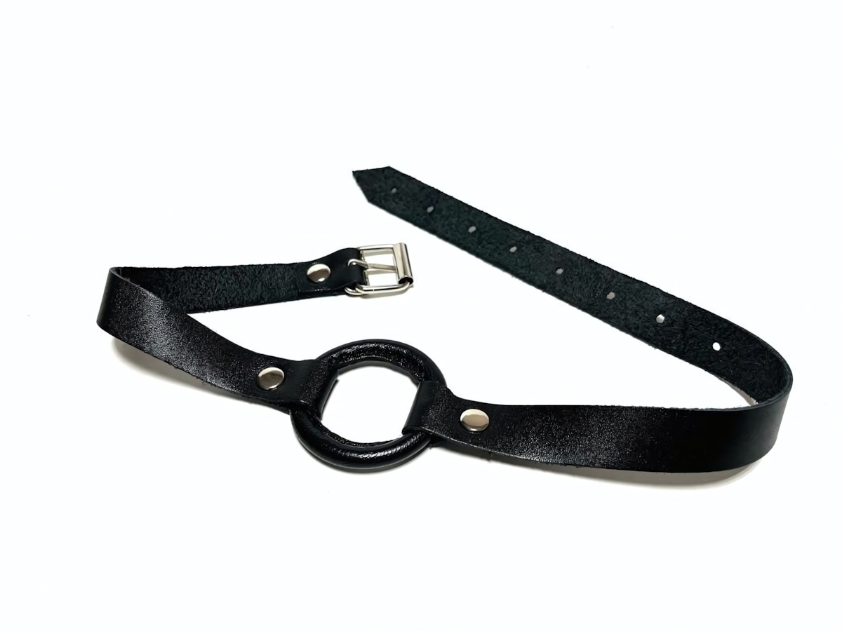 Черный кляп-кольцо на кожаных ремешках — это сочетание комфорта и функциональности. Созданный из высококачественной натуральной кожи, он идеально подходит для тех, кто ценит надежность и стиль в своих играх.