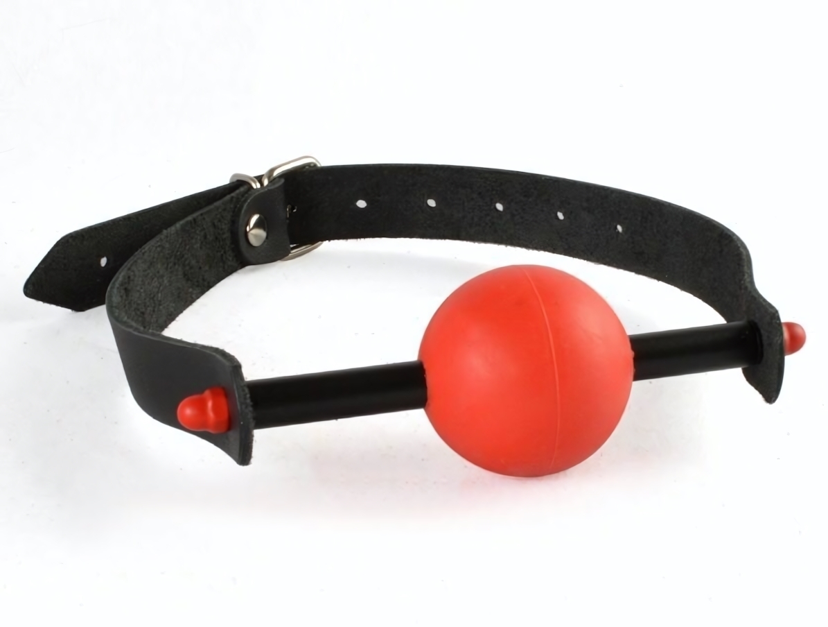 Кляп-шар с регулировкой, диаметр 4,5см, кожа/термоэластомер, черный/красный