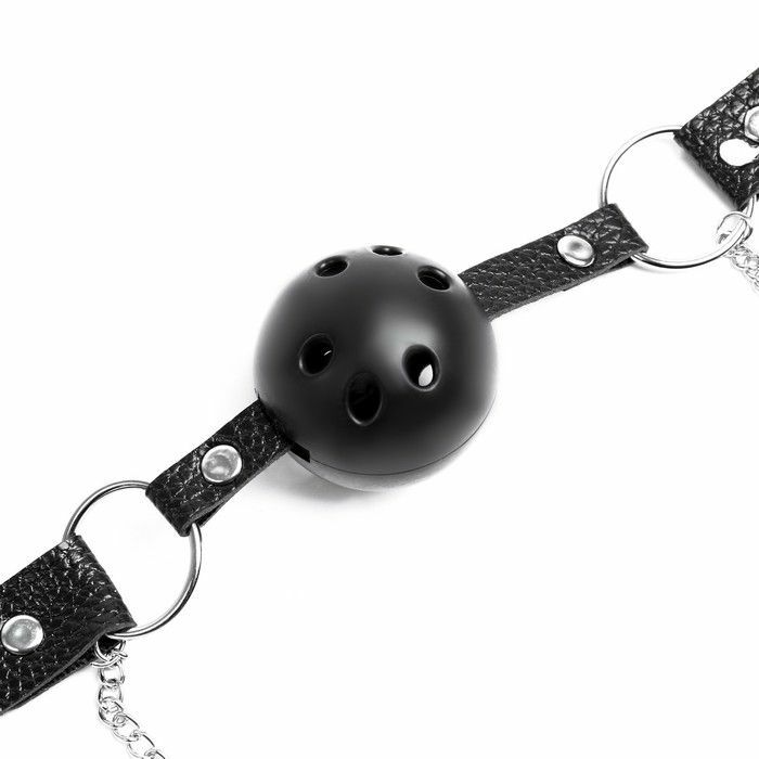 Шар изготовлен из прочной резины, ремешок выполнен из кожи с металлической пряжкой для быстрой регулировки, цепочки и зажимы — из металла с пластиковыми рукоятками и защитными колпачками для комфорта. Совокупность материалов обеспечивает долговечность и эстетичность даже при интенсивном использовании.