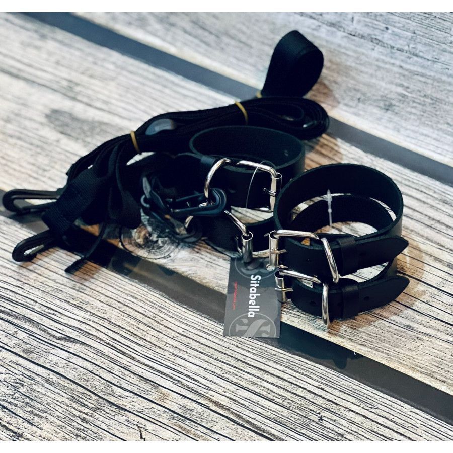 Выбор этого комплекта гарантирует вам не только высокое качество, но и долговечность. Изготовленный из натуральной кожи, он обеспечивает надежность и комфорт в использовании. Черный цвет придает комплекту стильный и элегантный вид, что делает его отличным дополнением к любому интерьеру. Благодаря прочным карабинам и ремешкам, вы можете быть уверены в безопасности во время использования.