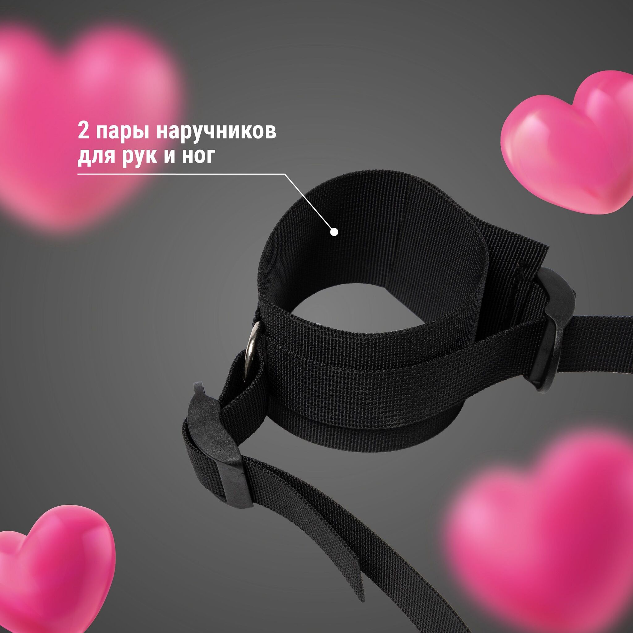 - 2 пары регулируемых наручников для рук и ног