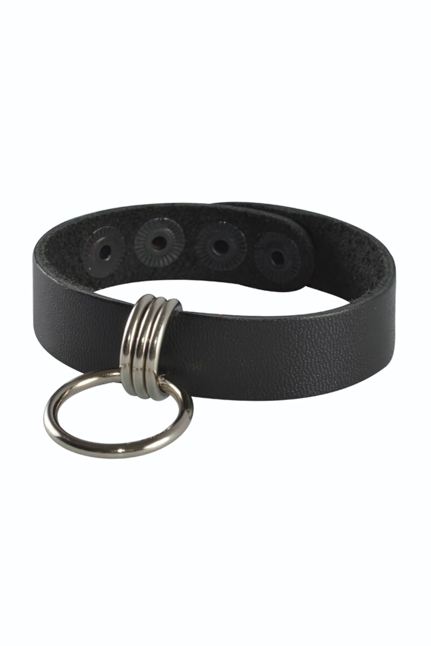 Браслет кожаный регулируемый с металлическим кольцом, черный, длина 21 см, коллекция «BDSM accessories»