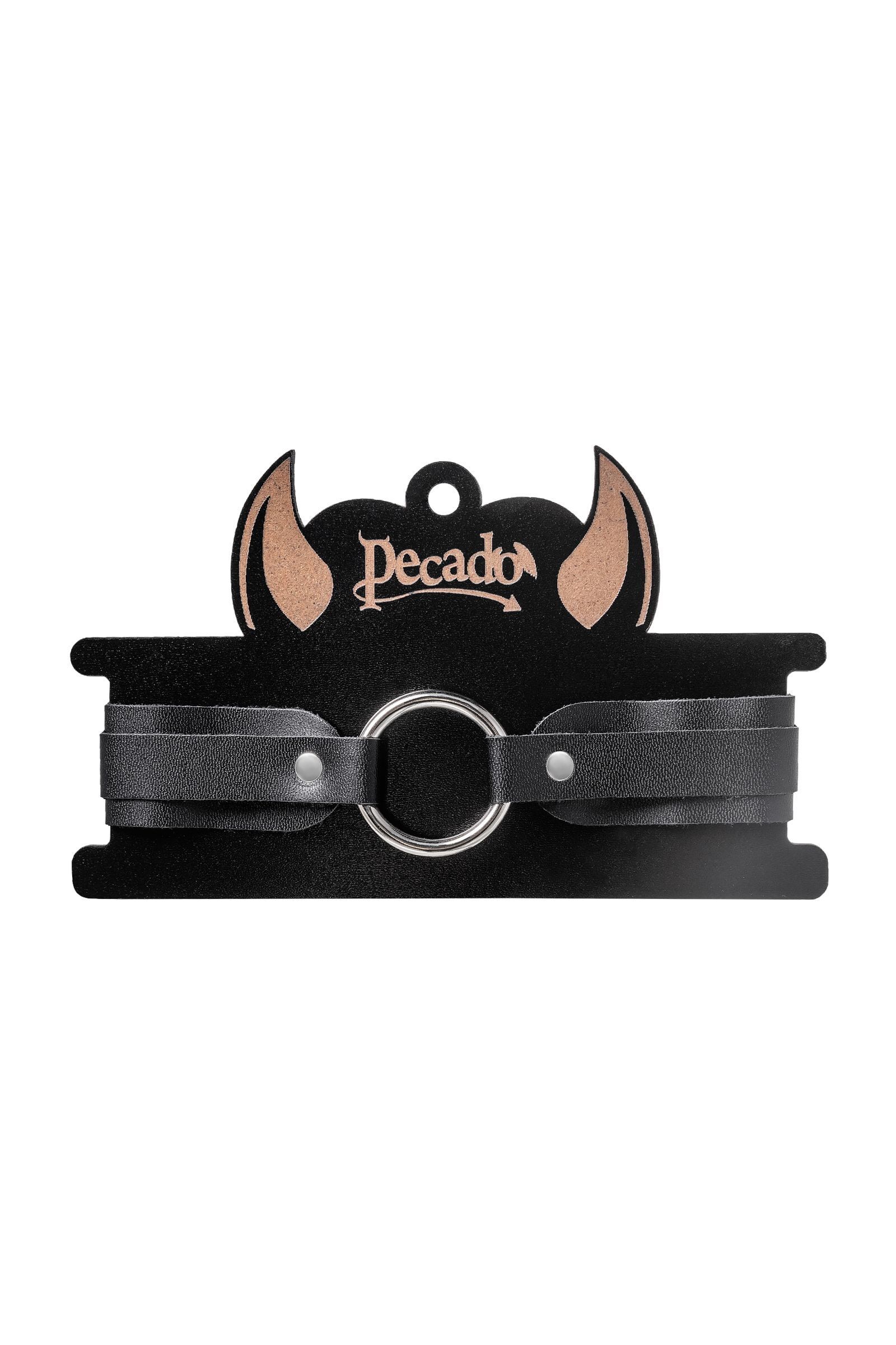 Изделие предназначено для ношения на шее, его удобно регулируемая пряжка позволяет подстроить длину под индивидуальный размер. Металлическое кольцо в центре позволяет присоединить поводок, цепочку или другие аксессуары, что расширяет возможности использования и делает его универсальным дополнением образа.