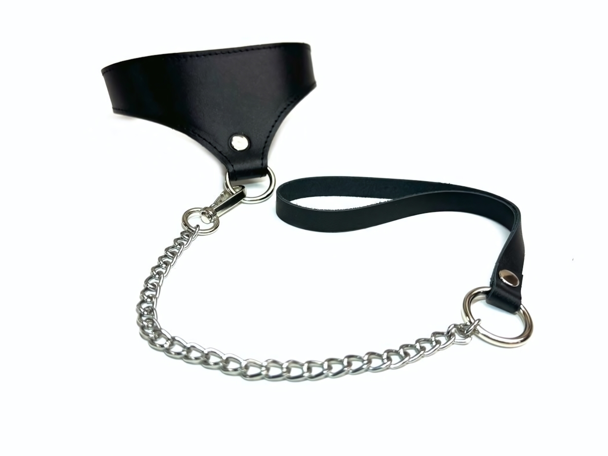 Регулируемый комплект из натуральной кожи с металлическими элементами создан для ценителей элегантности и функциональности. Идеально подходит для создания выразительных образов в стиле фетиш-эстетики.