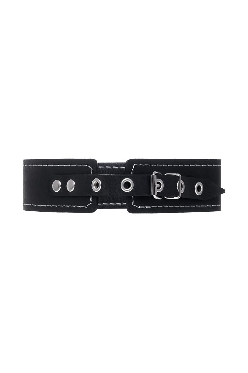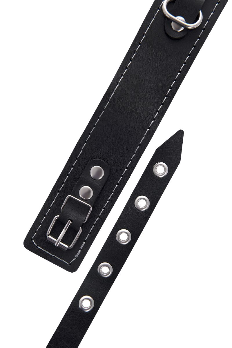 - Ошейник-чокер из натуральной кожи черного цвета с регулируемой застежкой.