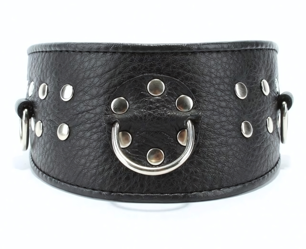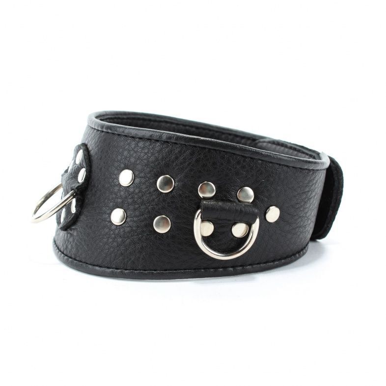 Ошейник кожаный регулируемый, черный, натуральная кожа, обхват 30-36 см, ширина 6 см