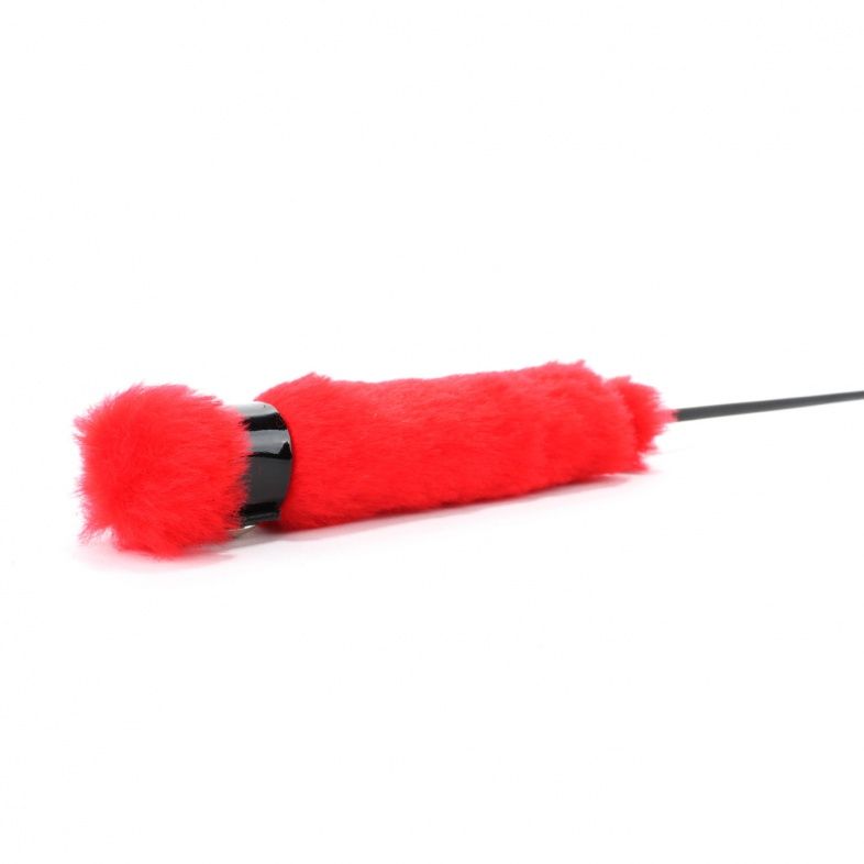 Сочетание черного лакового покрытия и ярко-красной меховой ручки создает визуально привлекательный контраст, делая этот стек не только функциональным инструментом, но и стильным аксессуаром для взрослых игр.