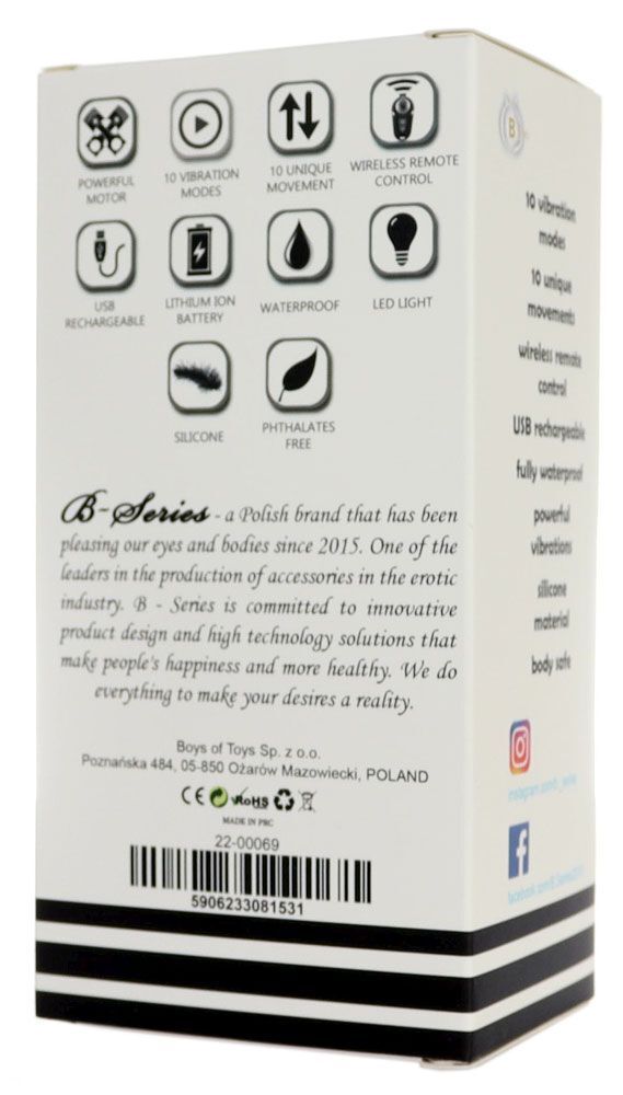 Этот современный массажер простаты предлагает вам уникальное сочетание удовольствия и комфорта. С 10 режимами вибрации и возвратно-поступательными движениями, он создан для того, чтобы подарить вам незабываемые моменты наслаждения. Управление с помощью пульта дистанционного управления делает использование устройства простым и удобным, позволяя вам сосредоточиться на своих ощущениях.