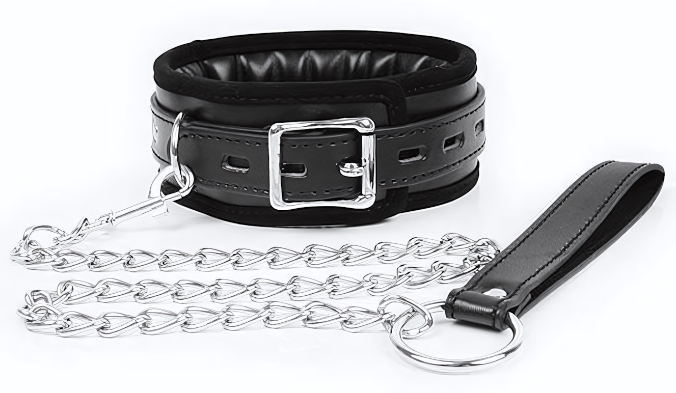 Этот ошейник подходит как для новичков, так и для опытных пользователей. Он оснащен металлической пряжкой с несколькими отверстиями, что позволяет легко регулировать размер под любую шею. В комплект входит металлическая цепочка-поводок с ручкой-петлёй, которую можно отстегнуть при необходимости. Это делает его универсальным аксессуаром для различных сценариев.