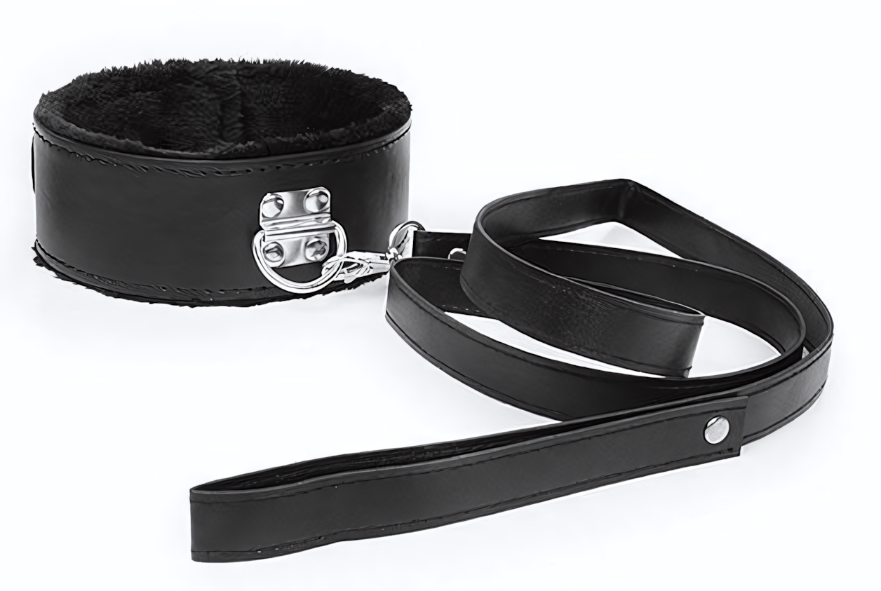 Черный ошейник с поводком создан для тех, кто ценит яркие эмоции и хочет разнообразить интимную жизнь. Мягкая меховая подкладка обеспечивает комфорт, а стильный дизайн из искусственной кожи подчеркнет вашу индивидуальность.