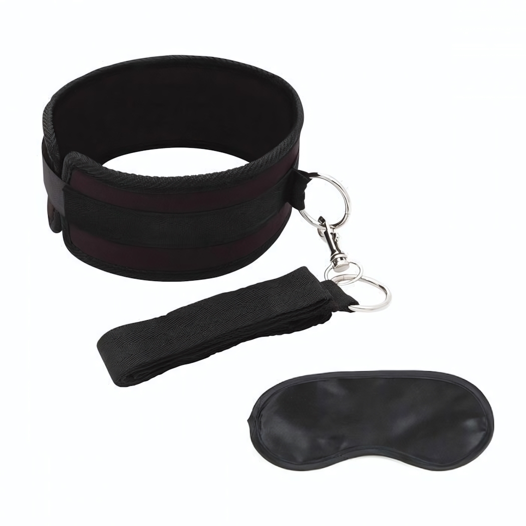 Ошейник легко регулируется с помощью липучки, что позволяет подстроить его под любые размеры. Длинный поводок, пристегивающийся металлическим карабином, дает возможность управлять движениями партнера, создавая ощущение контроля и доверия. В комплект также входит маска на глаза, которая добавляет элемент загадки и интриги в ваши игры.