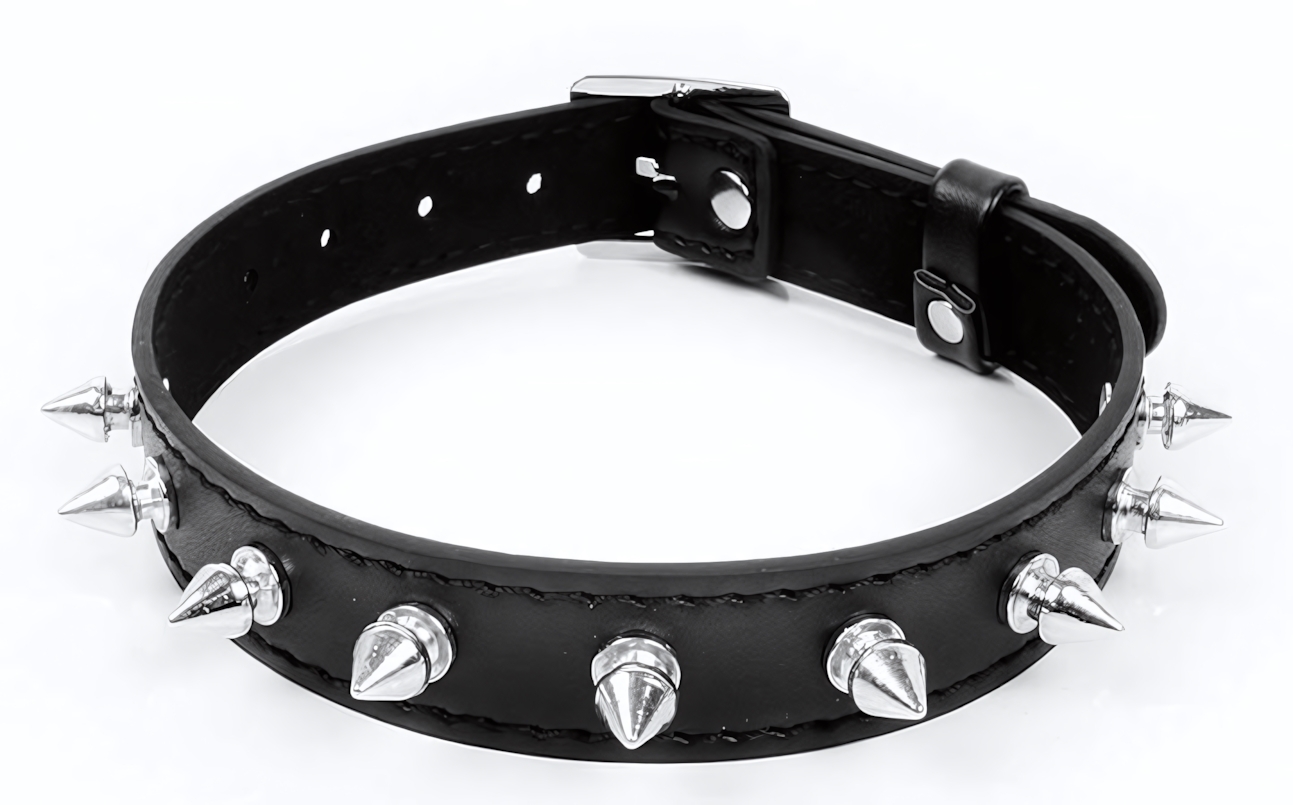 Элегантный черный ошейник с шипами для БДСМ-игр