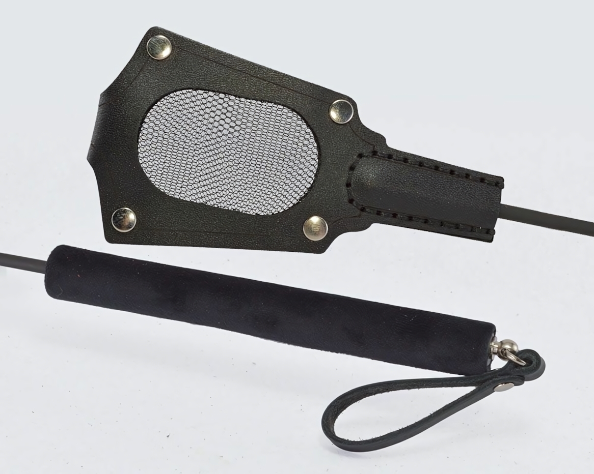 Плётка 'Готика гламур', черная, натуральная кожа, металлическая сетка