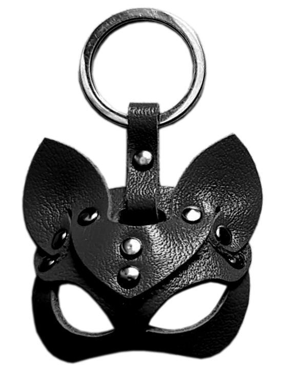 Авторский брелок в форме кошачьей маски сочетает практичность и эстетику. Изготовленный из гладкой натуральной кожи, он станет стильным дополнением ключей или оригинальным элементом тематического образа.