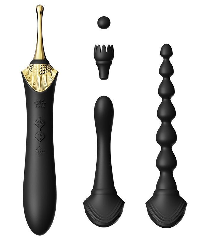 Вибратор Bess 2, черный, силикон, 4 насадки, 8 режимов, 21.9см