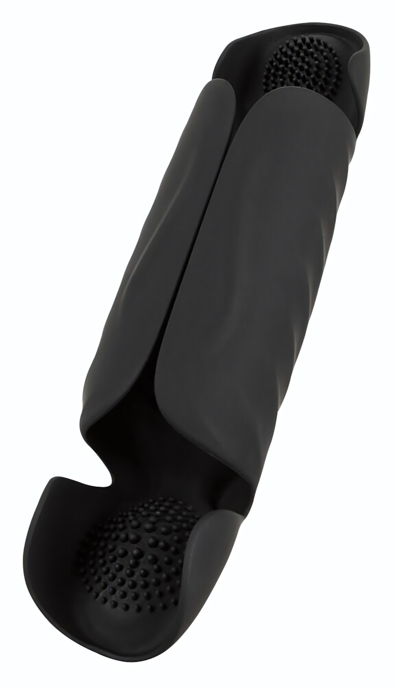 Устройство разработано с учетом анатомических особенностей. Его гибкие силиконовые "крылья" мягко и плотно обхватывают ствол, обеспечивая комфортную фиксацию и адаптируясь под индивидуальные размеры. Три независимые зоны стимуляции воздействуют на ключевые эрогенные зоны: