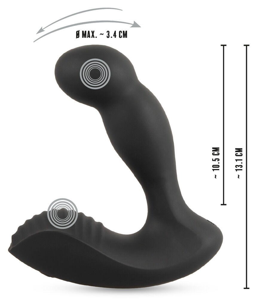 - Эргономичный дизайн: анатомически правильный изгиб повторяет естественные контуры тела, обеспечивая точное воздействие на простату. Рифленая поверхность у основания гарантирует надежный и удобный захват.