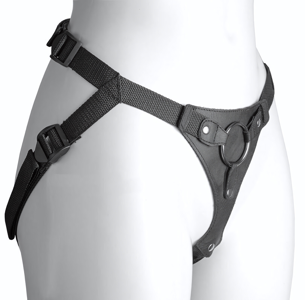 Пояс-трусики с кольцом для насадок, черный, искусственная кожа