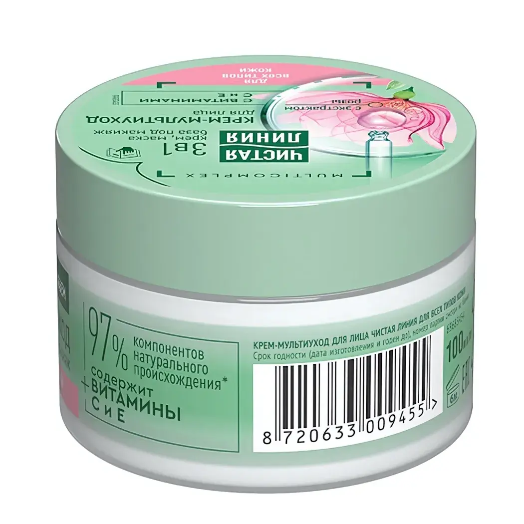 Откройте для себя идеальный уход за кожей с кремом мульти-уход ЧИСТАЯ ЛИНИЯ. Этот крем создан для всех типов кожи и содержит 97% компонентов натурального происхождения, что обеспечивает бережный и эффективный уход. Благодаря витаминам в составе, ваша кожа будет выглядеть здоровой и ухоженной, а также получит необходимое увлажнение и питание.