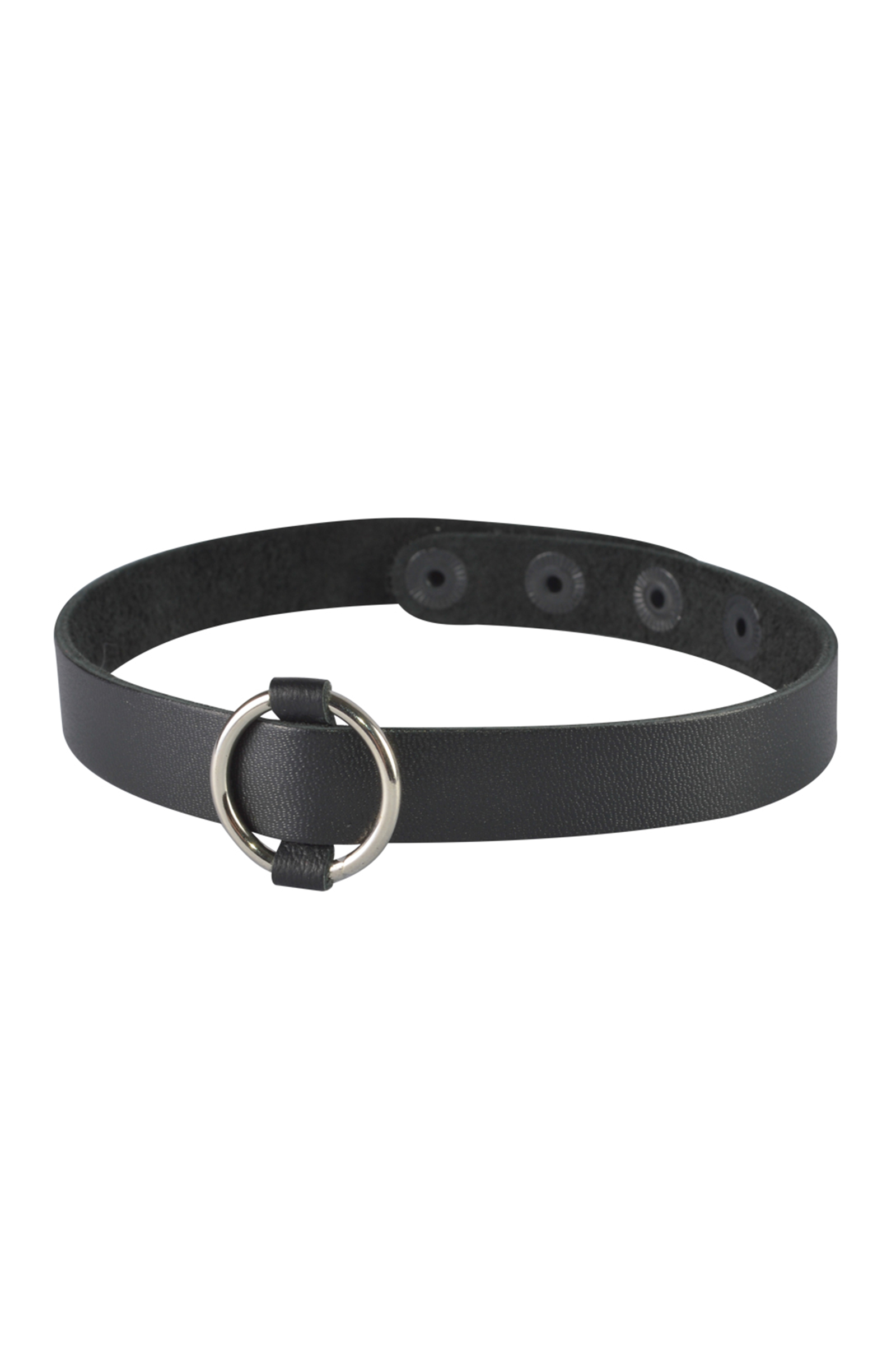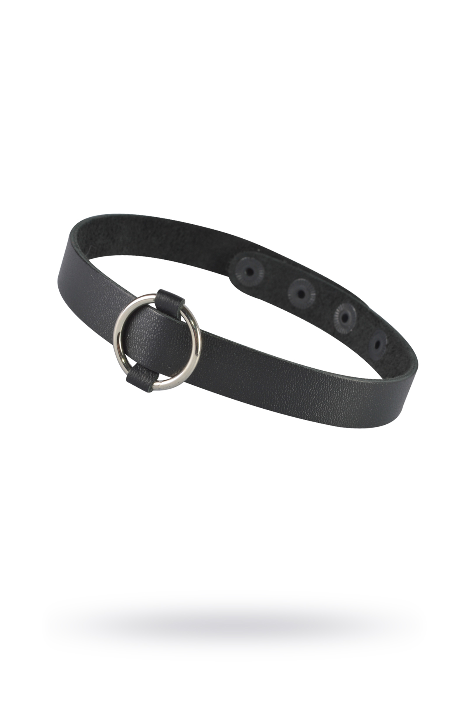 Модель выполнена из натуральной кожи с приятной матовой текстурой. Чокер мягко прилегает к шее и регулируется при помощи кнопок, что позволяет подобрать удобную посадку. Универсальный размер делает аксессуар подходящим для большинства пользователей. Металлическое кольцо с никелевым покрытием надёжно закреплено и может использоваться как декоративный элемент или функциональная деталь в БДСМ-практиках.