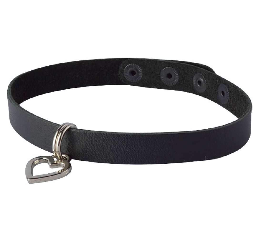 Чокер из натуральной кожи с металлическим сердечком, регулируемый, 40см, черный