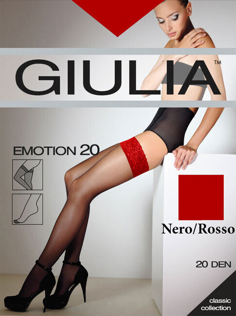 Подарите себе комфорт и чувственность с чулками Emotion от GIULIA. Модель с силиконовой резинкой гарантирует надежную фиксацию без дискомфорта, а ажурное кружево добавляет изысканности вашему образу.