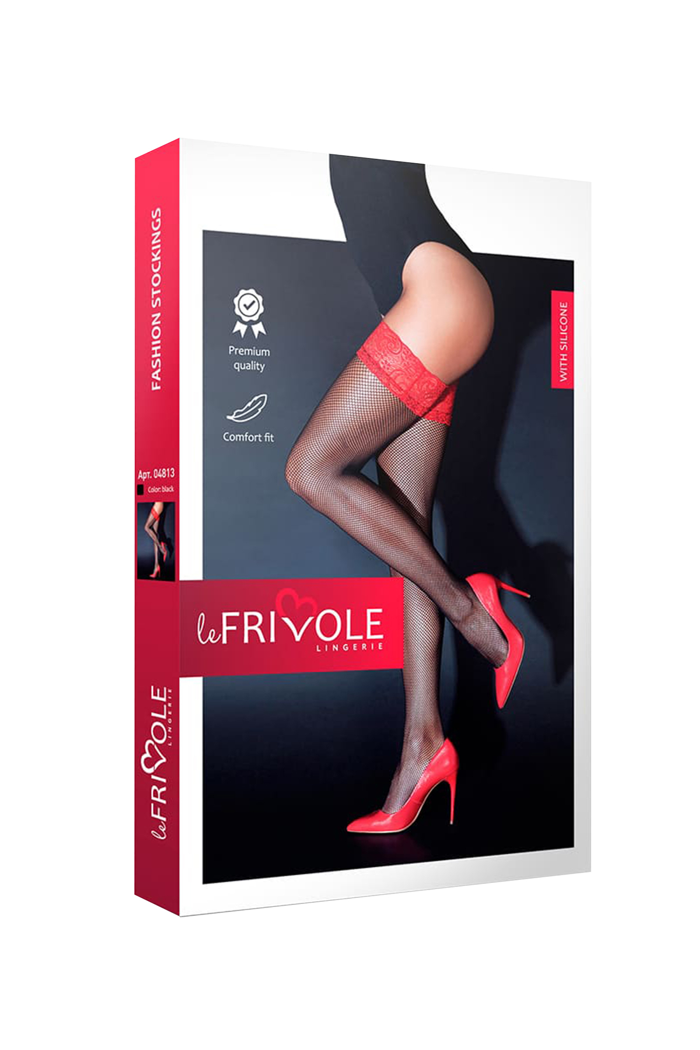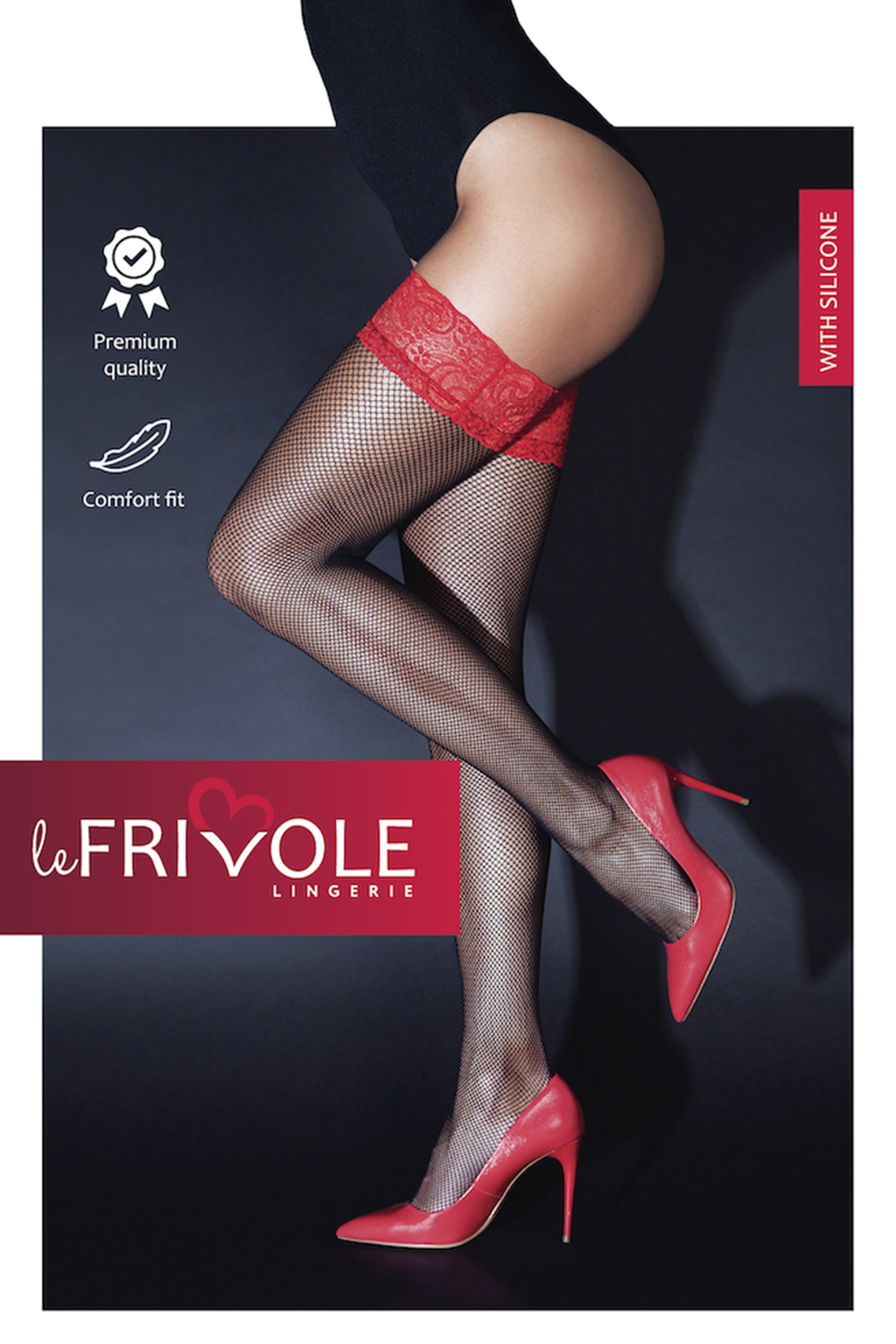 Чулки 'Le Frivole' с манящей красной кружевной резинкой станут идеальным дополнением вашего гардероба. Они подчеркнут изящность ваших ног и добавят особый шарм вашему образу.
