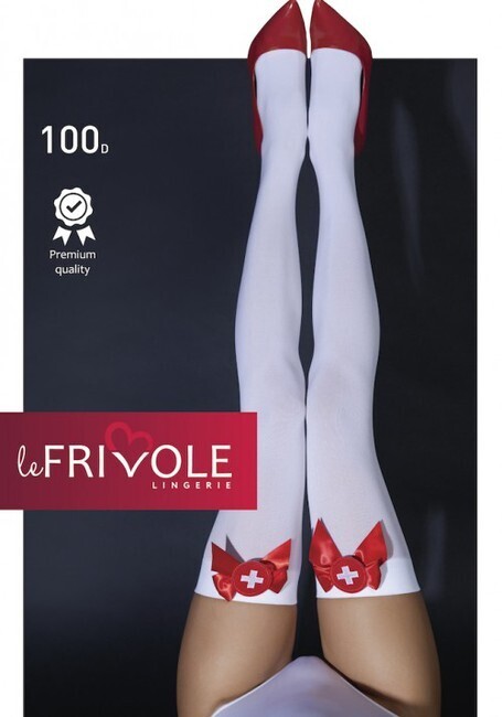Погрузитесь в мир стиля и комфорта с чулками медсестры Le Frivole. Эти чулки, выполненные в белом цвете с яркими красными бантиками, добавят изюминку в ваш образ и подчеркнут вашу индивидуальность. Высокое качество материалов и продуманный дизайн делают их идеальным выбором для особых случаев или костюмированных вечеринок.