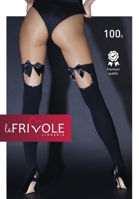 Чулки женские с бантиками и стразами LE FRIVOLE, 100D, размер 42-46, черный