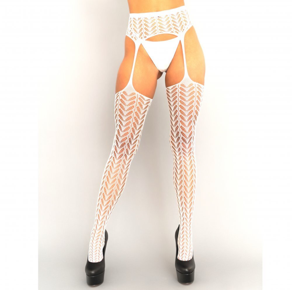 Чулки с поясом Amor El: сетчатые, белые, размер S-L (42-48), комфортная посадка