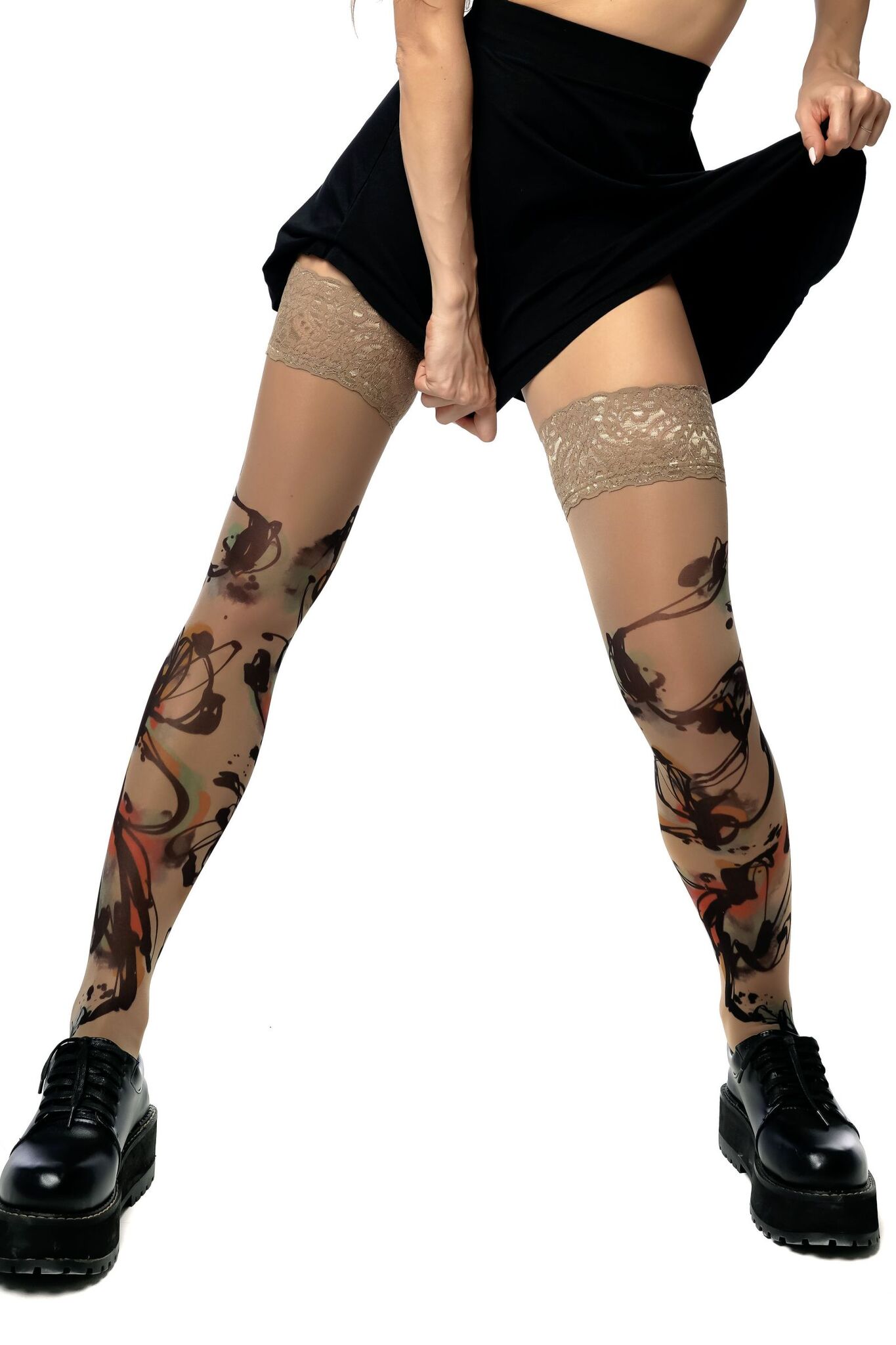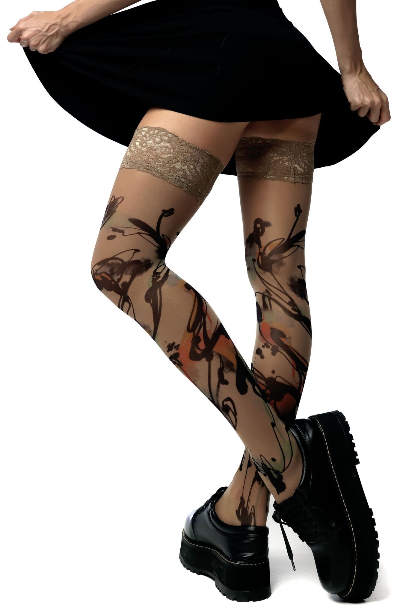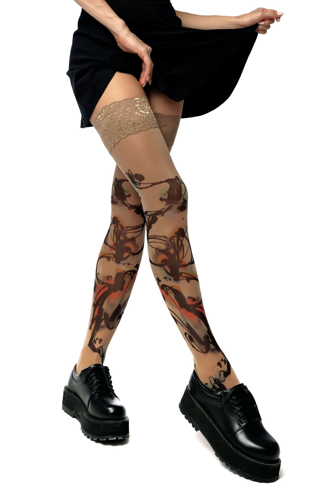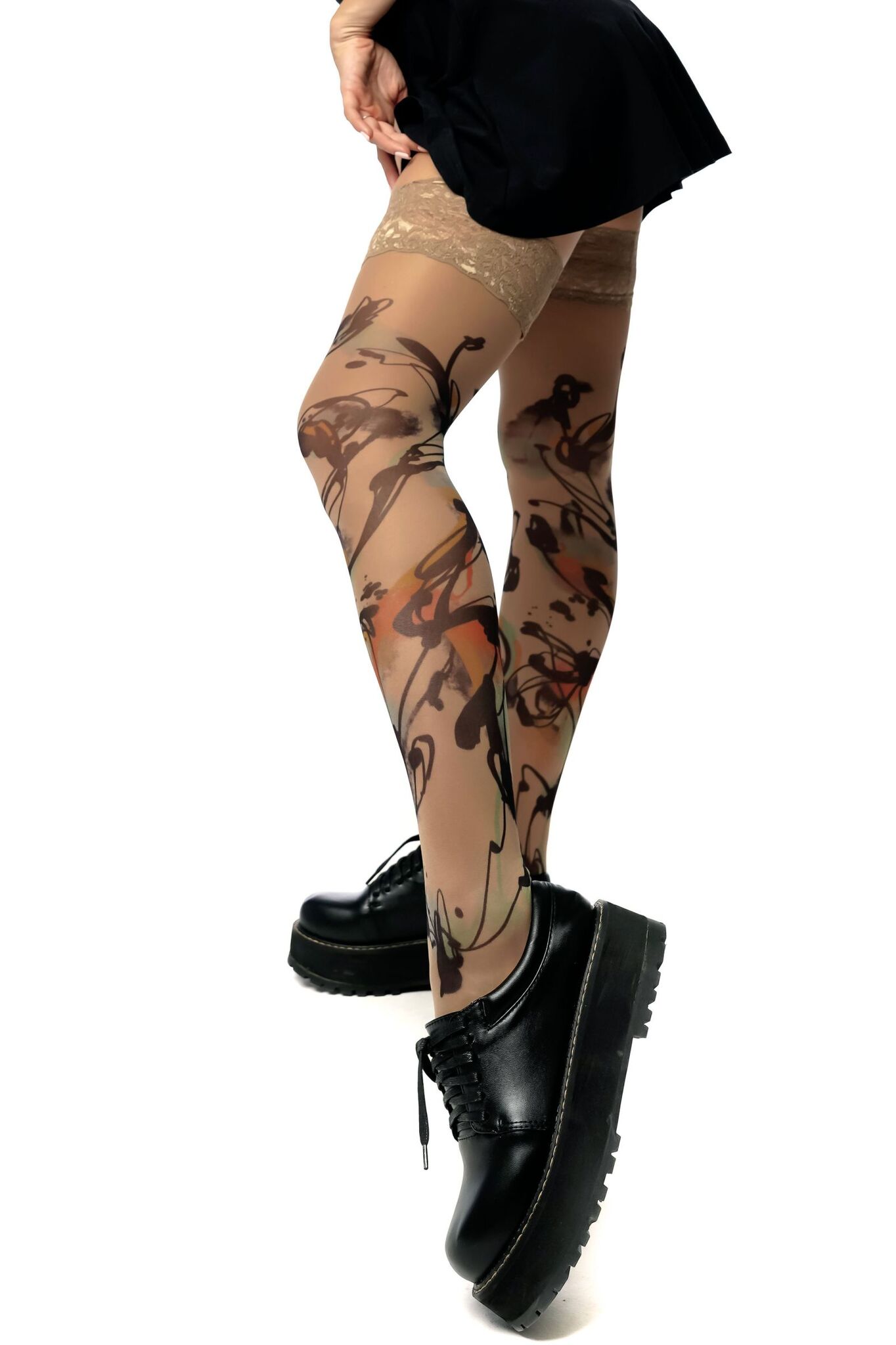 Погрузитесь в мир стиля и комфорта с нашими чулками, которые не только подчеркнут вашу индивидуальность, но и обеспечат долговечность. Эти чулки с уникальным принтом в виде цветных всполохов выглядят как настоящая татуировка, добавляя изюминку в любой наряд. Плотность 40 ден гарантирует, что они выдержат многочисленные стирки, сохраняя свой первоначальный вид и яркость.
