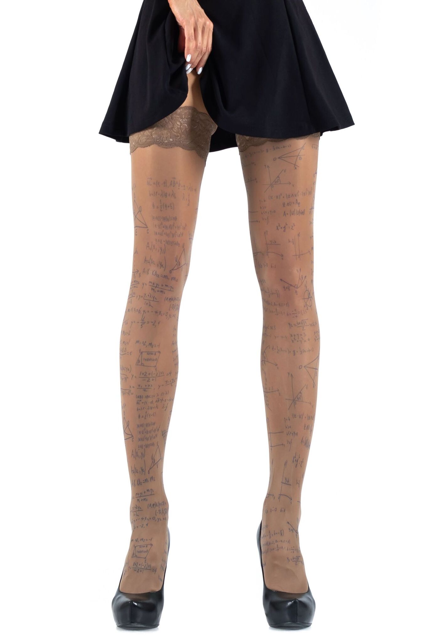 Чулки с уникальным математическим принтом подчеркнут вашу индивидуальность и добавят изюминку в повседневный образ. Идеальное сочетание науки и элегантности.
