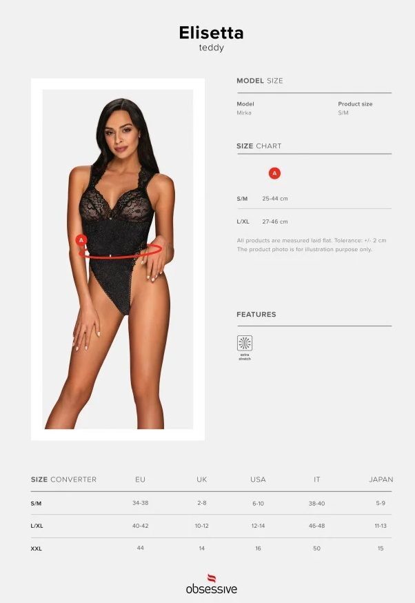 Погрузитесь в мир элегантности и соблазна с кружевным боди 'Elisetta'. Это изделие сочетает в себе нежное кружево и блестящий материал, что делает его идеальным выбором для особых случаев. Боди подчеркнет вашу фигуру и добавит уверенности в любой ситуации.