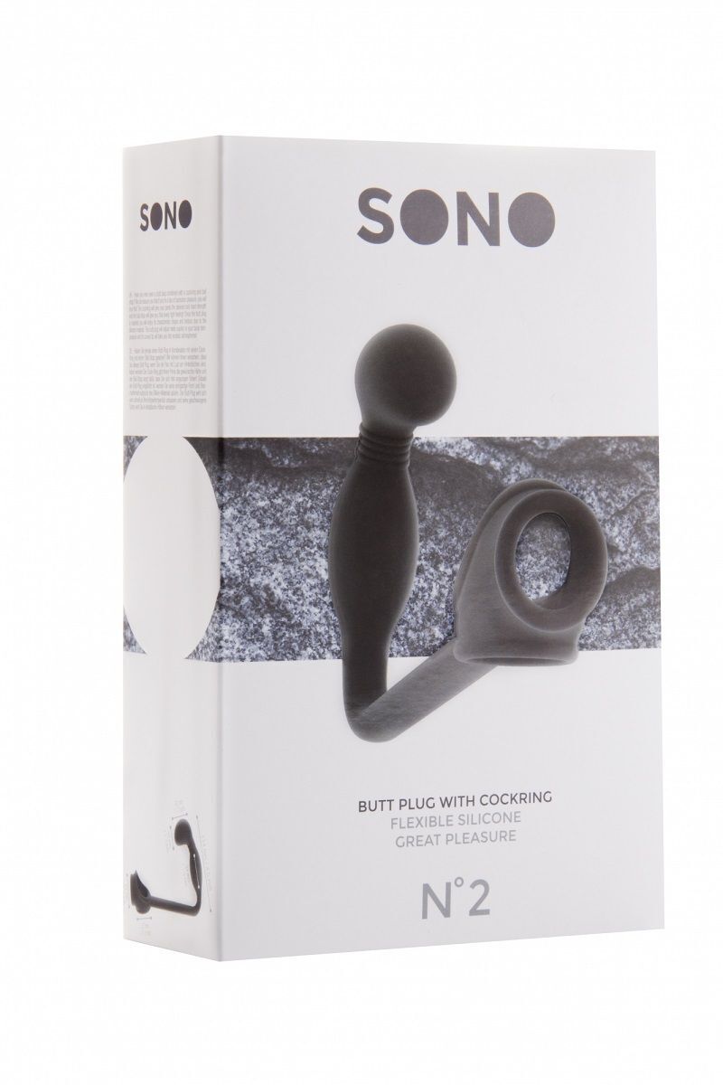 Анальная пробка с эрекционным кольцом «Sono» №2, силикон, черный, 11,4 см, для усиления эрекции