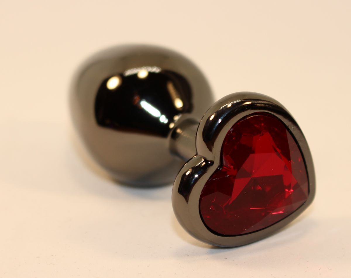Чёрная анальная пробка с красным стразом-сердцем